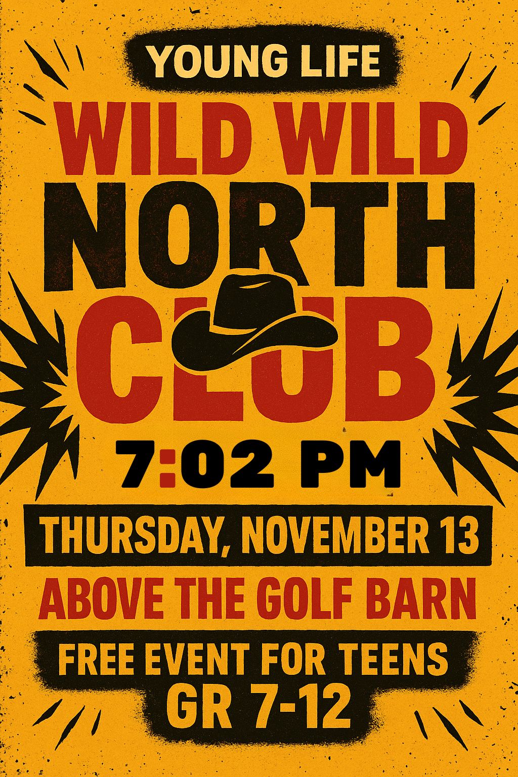Unless otherwise stated, clubs and hangouts will start at 7:02 PM on Thursday’s.